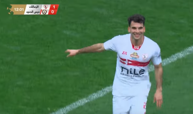 الدوري المصري الممتاز: أحمد سيد زيزو يسجل الهدف الأول لنادي الزمالك في مرمى حرس الحدود في الدقيقة 11