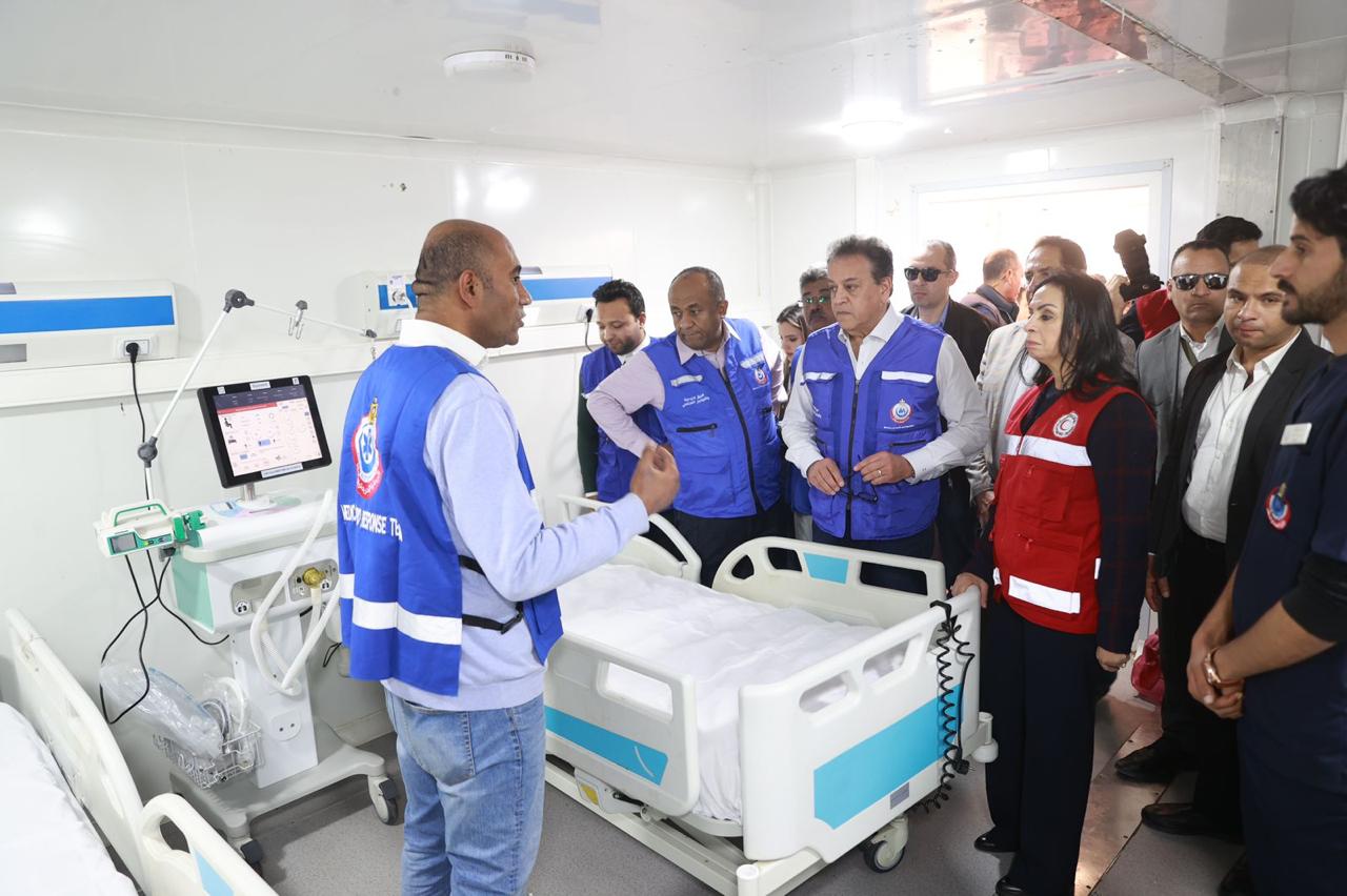 رافق الوزير خلال الجولة الدكتور عمرو قنديل، نائب وزير الصحة، والدكتور أحمد السبكي، رئيس الهيئة العامة للرعاية الصحية، والدكتور أحمد سعفان، مساعد وزير الصحة لشئون المستشفيات، والدكتور بيتر وجيه، رئيس قطاع الطب العلاجي، والدكتور محمد الصدفي، رئيس الإدارة المركزية للرعاية الحرجة والعاجلة، والدكتور أحمد العزب، رئيس قطاع العمليات والتشغيل بهيئة الإسعاف، والدكتور أحمد سمير مدير مديرية الشئون الصحية في شمال سيناء، والدكتور، والدكتورة أمال الإمام، المدير التنفيذي للهلال الأحمر، والدكتور محمد العقبي مساعد وزيرة التضامن الاجتماعي والمتحدث الرسمي للوزارة، والدكتورة دينا الصيرفي، مساعد وزيرة التضامن للتعاون الدولي، وأيمن عبدالموجود، الوكيل الدائم لوزارة التضامن، وعبدالسلام محمد، مدير مكتب وزيرة التضامن.