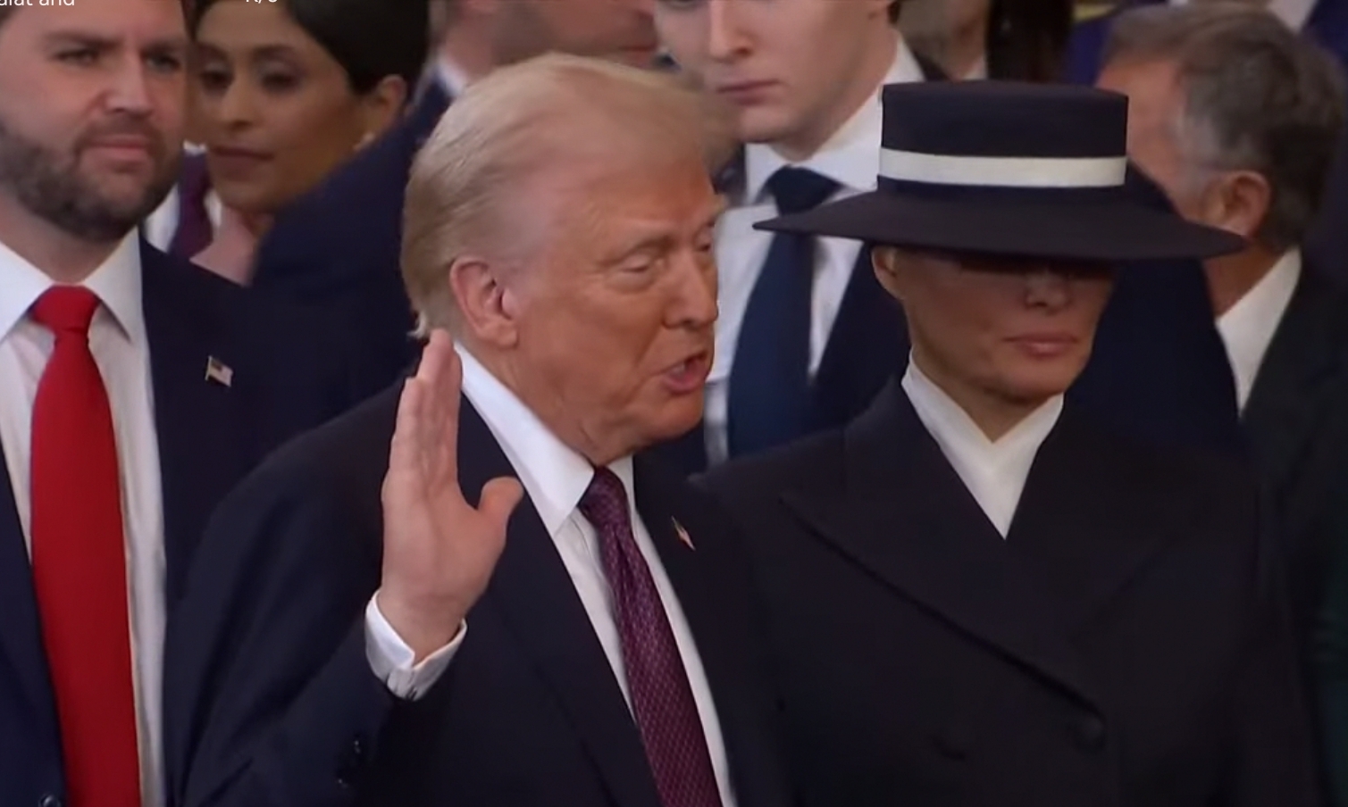 وقال ترامب: "أنا دونالد جون ترامب، أقسم رسميًا أنني سأقوم بتنفيذ مهام منصب رئيس الولايات المتحدة بأمانة، وسأبذل قصارى جهدي للحفاظ على دستور الولايات المتحدة وحمايته والدفاع عنه، فليساعدني الله".