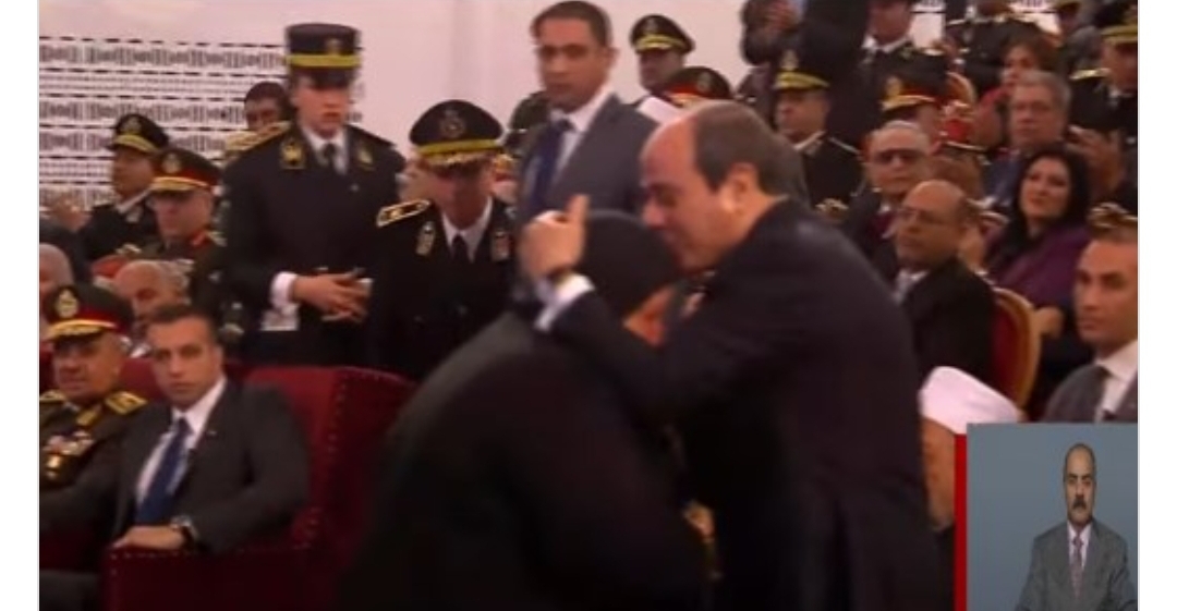 شاهد| الرئيس السيسي يقبل رأس أم الشهيد عمر القاضي .. لحظات مؤثرة