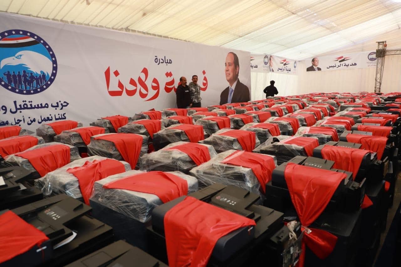 وعلي هامش الحفل، شهدت قيادات الأمانة المركزية لحزب مستقبل وطن، توزيع 50 آلة زراعية لعدد من الفلاحين ضمن مبادرة "أيد بتزرع وايد بتساعد"، و200 ماكينة تصوير على أعلي مستوي تقني، و50 كرسيًا متحركًا لدعم ذوي الإعاقة، ضمن مبادرة "سواعد المستقبل".