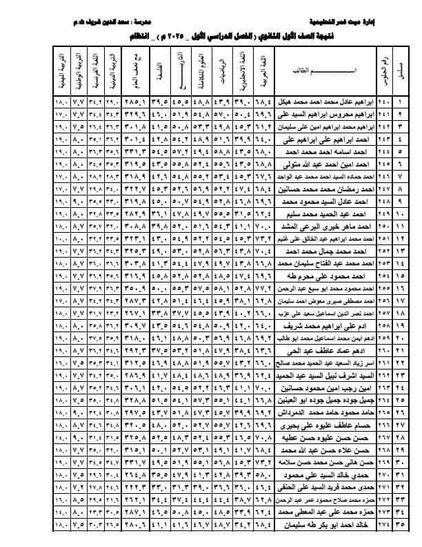 نتيجة الصف الأول الثانوي الترم الأول 2025