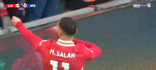 وشهدت الدقيقة 32 من عمر مباراة ليفربول وإبسويتش تاون تسجيل الملك المصري محمد صلاح الهدف الثاني للريدز بطريقة رائعة ومن زاوية مستحيلة.