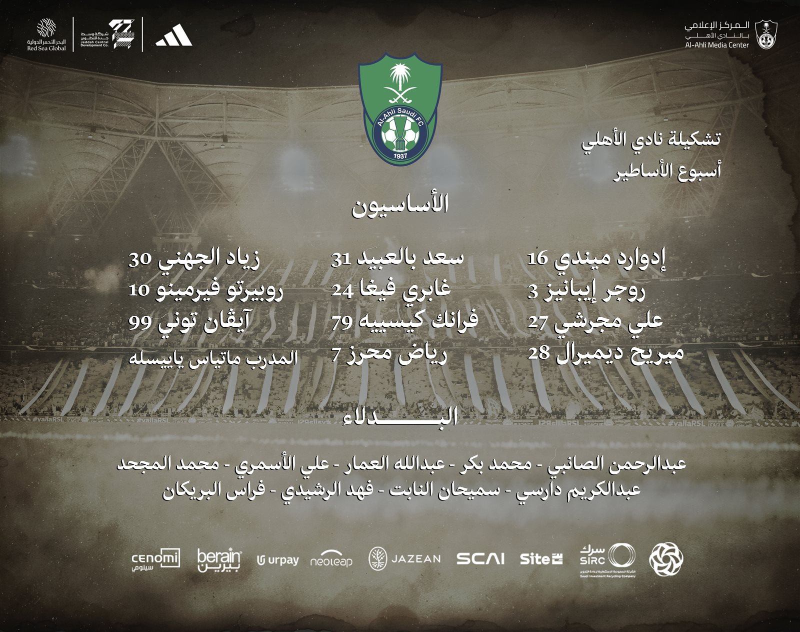 يبدأ أهلي جدة المباراة أمام الرياض، في دوري روشن السعودي، بتشكيل مكون من: