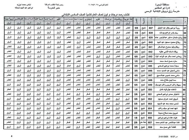 نتيجة الصف السادس الابتدائي الترم الأول 2025