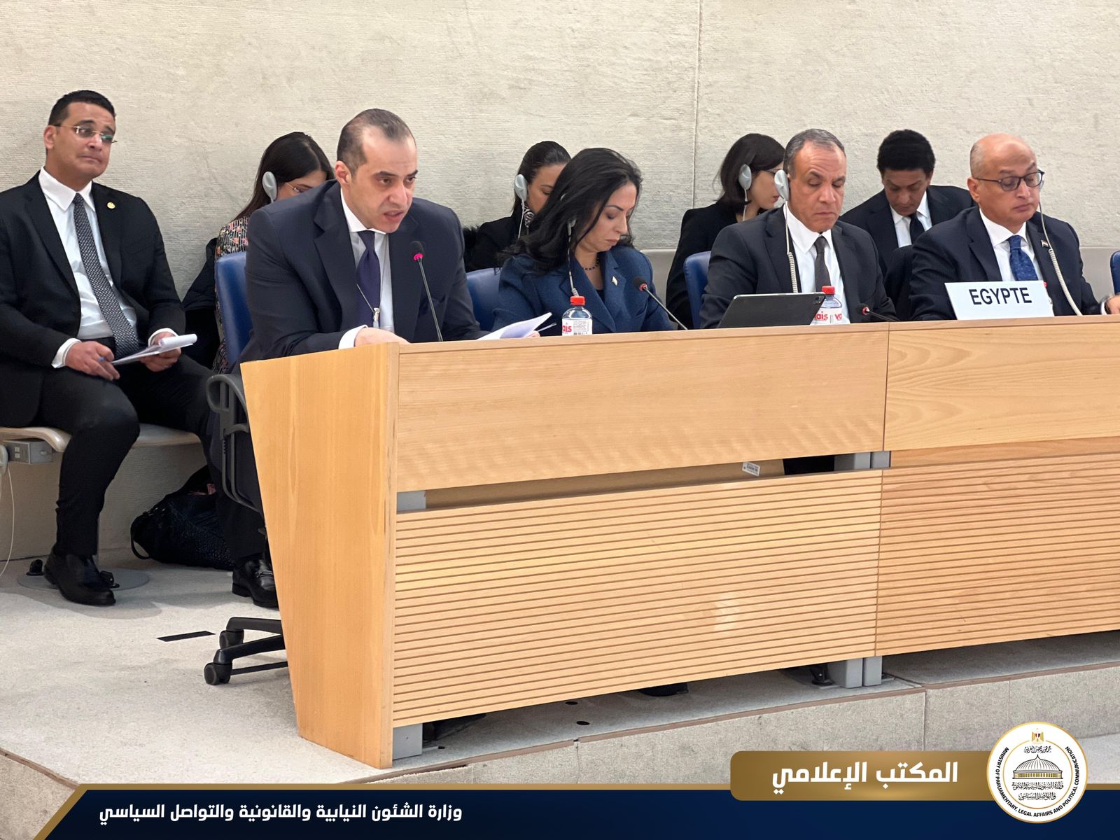 استهل المستشار محمود فوزي، وزير الشئون النيابية والقانونية والتواصل السياسي، حديثه بأن مصر حققت نهضة تشريعية ومؤسسية شاملة في مجال الحقوق المدنية والسياسية، تأكيداً على التزام الدولة بتنفيذ التوصيات التي قبلتها في الاستعراض الدوري الشامل الأخير، والاستجابة للتحديات الوطنية والدولية المرتبطة بهذا الملف.