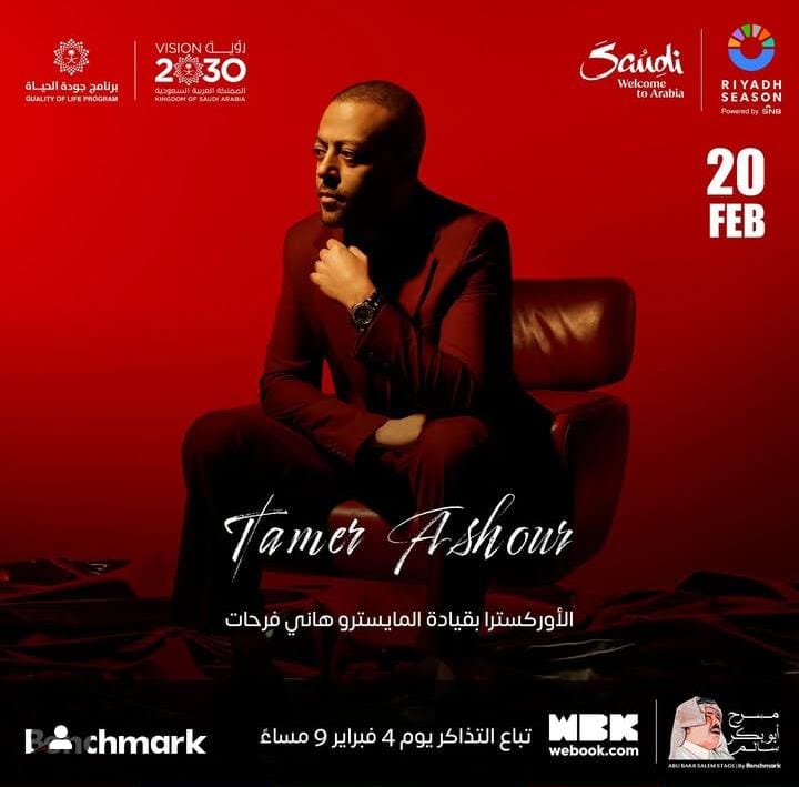يستعد النجم تامر عاشور لإحياء حفل غنائي في المملكة العربية السعودية وذلك في يوم 20 من شهر فبراير الجاري وذلك ضمن حفلات موسم الرياض السعودي الذي يقام في الفترة الحالية، ومن المتوقع أن يحقق حضور جماهيري كبير كعادة حفلات تامر عاشور بالسعودية.