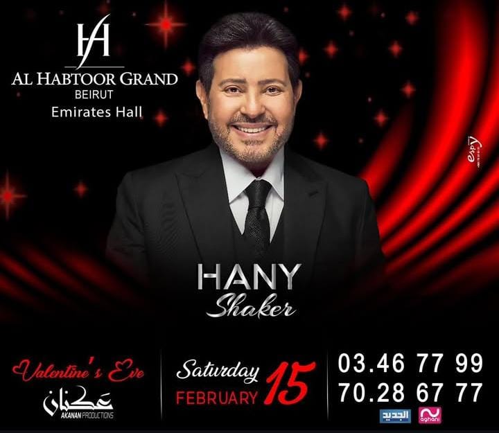 وروج هاني شاكر لحفله الغنائي في بيروت وذلك من خلال منشور رصده موقع تحيا مصر عبر حسابه الرسمي بموقع تبادل الصور والفيديوهات انستجرام، وعلق عليه، قائلا: أمير الغناء العربي هاني شاكر يغني " الحب" مساء السبت ١٥ فبراير اوتيل الحبتور غراند بيروت- لبنان.