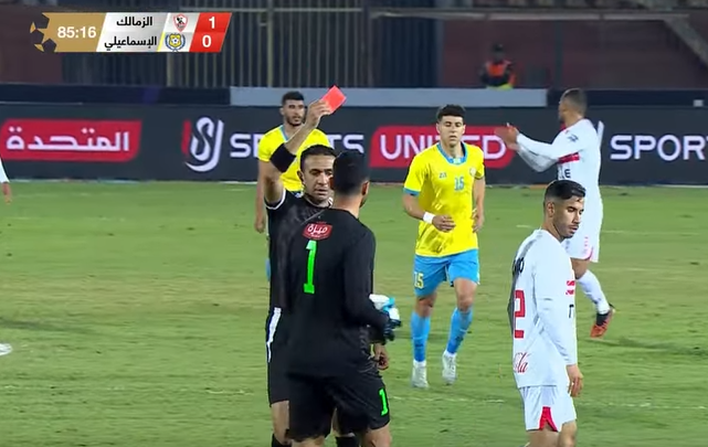 الدوري الممتاز: ناصر ماهر لاعب الزمالك يحصل على البطاقة الحمراء بعد ضرب مدافع الإسماعيلي بدون كرة