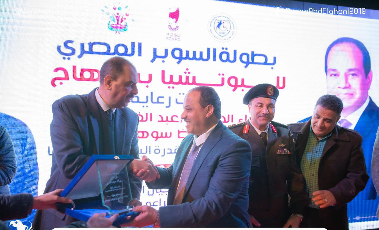ووجه رشاد عبدالغني ، الشكر لمحافظ سوهاج اللواء عبدالفتاح سراج ، على تكريمه له ضمن مجموعة المكرمين ، مؤكدا أنه سيكون دائما داعم لجميع الأنشطة والمبادرات التى تنفذ فى المحافظة ، متمنيا تكرار هذه الأحداث والبطولات الرياضية الكبري ومهنئا جميع المتسابقين بالبطولة .