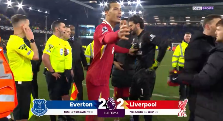 وبعد تسجيل هدف التعادل أعلن حكم المباراة مايكل أوليفر نهاية مباراة ليفربول وإيفرتون في الدوري الإنجليزي الممتاز بالتعادل الإيجابي بهدفين لكل فريق.