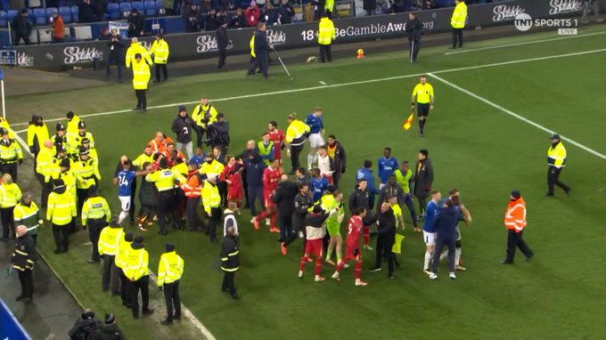 شهدت مباراة ليفربول وإيفرتون في الدوري الإنجليزي الممتاز أحداث ساخنة بعد نهاية المباراة، وأدت لإشهار 4 بطاقات حمراء في المباراة، وانتهت مباراة ليفربول وإيفرتون في مباراة مؤجلة من الجولة الخامسة عشر بالتعادل الإيجابي بهدفين لكل فريق، ويستعرض موقع تحيا مصر التفاصيل.