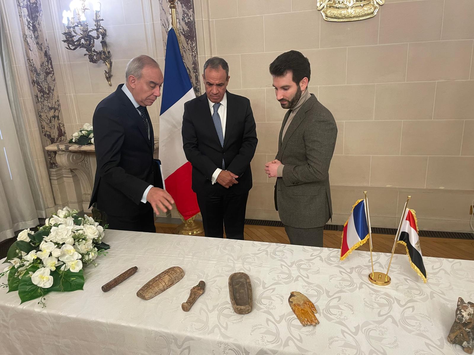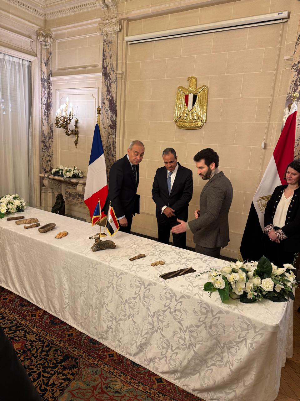وزير الخارجية يحضر مراسم استرداد قطع أثرية مصرية في باريس|صور