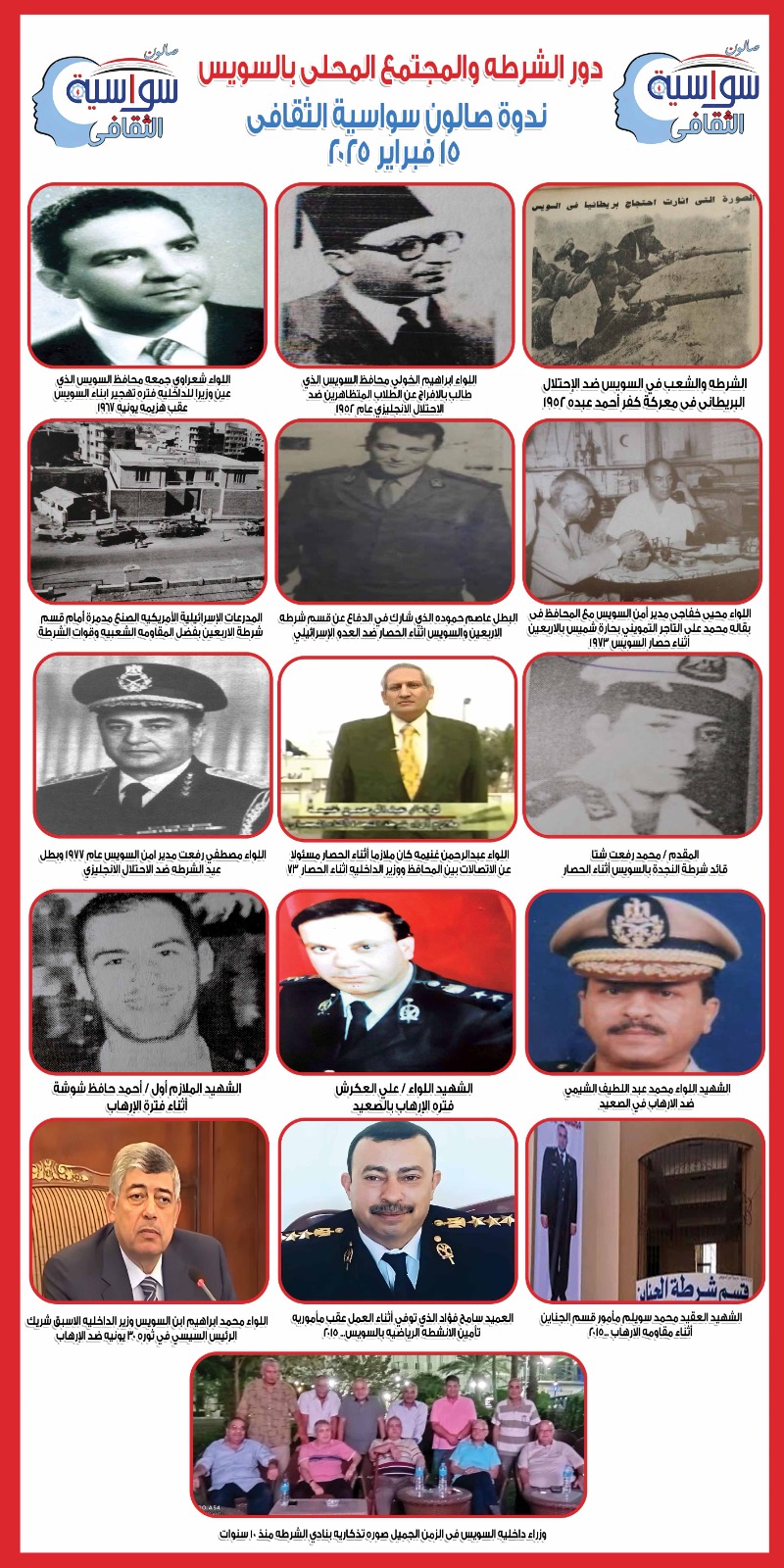 يأتي ذلك بحضور لفيف من رموز رجالات الشرطة من أبناء السويس الذين قاموا بالواجب الوظيفي والإنساني والوطني عبر المعارك التي خاضها شعب السويس ضد بريطانيا - اسرائيل - الارهاب وانفاذ القانون ضد الجريمة وبسط الامان للمواطنين.