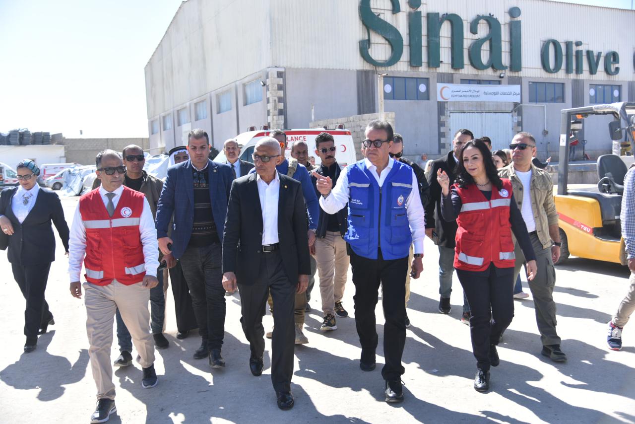 وزيرا الصحة والتضامن ووفد جامعة الدول العربية يتفقدون مركز الخدمات اللوجستية بمدينة العريش