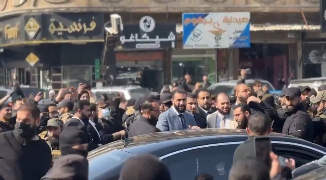 وفي الفيديو، يظهر الرئيس الشرع وهو يقف وبجواره مجموعة من المواطنين يرحبون به، ويحيط به عدد من رجال الأمن، قبل أن يختتم جولته ويعود إلى السيارة ويودعهم.