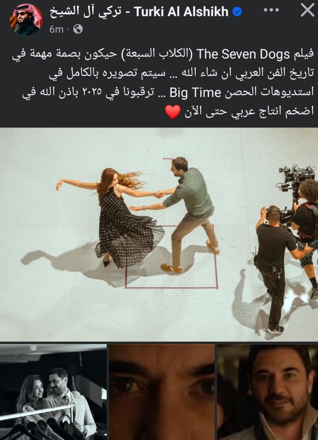 ونشر تركي آل الشيخ منشور آخر تحدث فيه عن الفيلم ووجه رسالة للمشاركين فيه وصناعه، كما تحدث عن هدفه الحقيقي وهو أن يكون فيلم عالمي يتم طرحه حول دول العالم، وقال: “هدفنا الذي لن نتخلى عنه هو الوصول بالإنتاج العربي لمستوى الإنتاجات العالمية وهدفنا ان يعرض هذا الفيلم وغيره من الأفلام القادمة في جميع أنحاء العالم.. ليس الموضوع المبلغ المادي في الانتاج غير المسبوق في العالم العربي لكن الموضوع كيف ينعكس هذا على الجودة والابهار، أشكر الأستاذ محمد الدباح على تحويل قصتي لسيناريو وحوار جميل ومبدع.. وأشكر كل النجوم المشاركين وأخص بالذكر كريم وعز، انتاجات استديوهات الحصن Big Time و GEA مختلفة ومميزة عن الجميع (The Seven Dogs)".