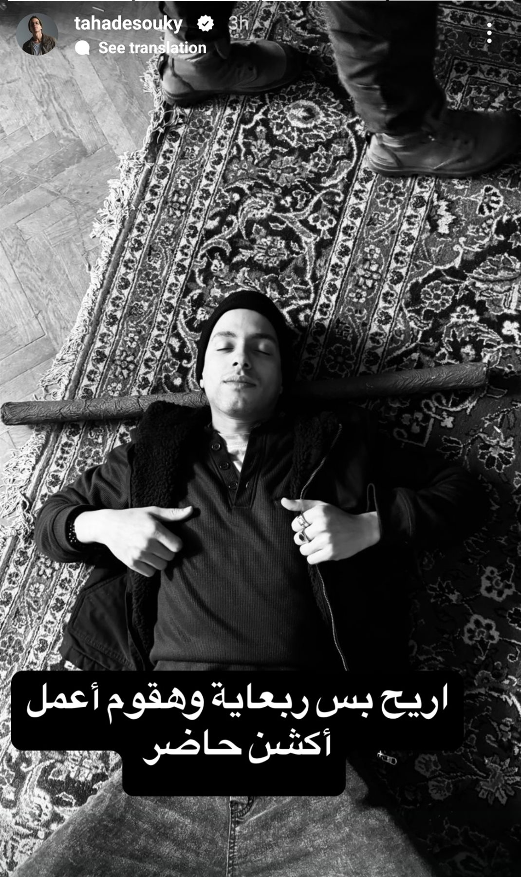 نشر طه دسوقي عبر حسابه الرسمي على موقع تبادل الصور والفيديوهات انستجرام صورة جديدة من كواليس مسلسل ولاد الشمس الذي يواصل تصوير مشاهده خلاله استعدادًا لطرحه بين مسلسلات رمضان 2025، وأرفق طه دسوقي صورة طريفة يرصدها موقع تحيا مصر وهو ملقى على الأرض وعلق عليها: "اريح بس ربعاية وهقوم أعمل أكشن حاضر"، ولاقت الصورة تفاعل كبير من الجمهور ورواد مواقع التواصل الاجتماعي الذي تداولوها وتعد هذه المرة الأولى التي يقدم فيها طه دسوقي دور أكشن وأن يخوض بطولة مطلقة في موسم رمضاني.