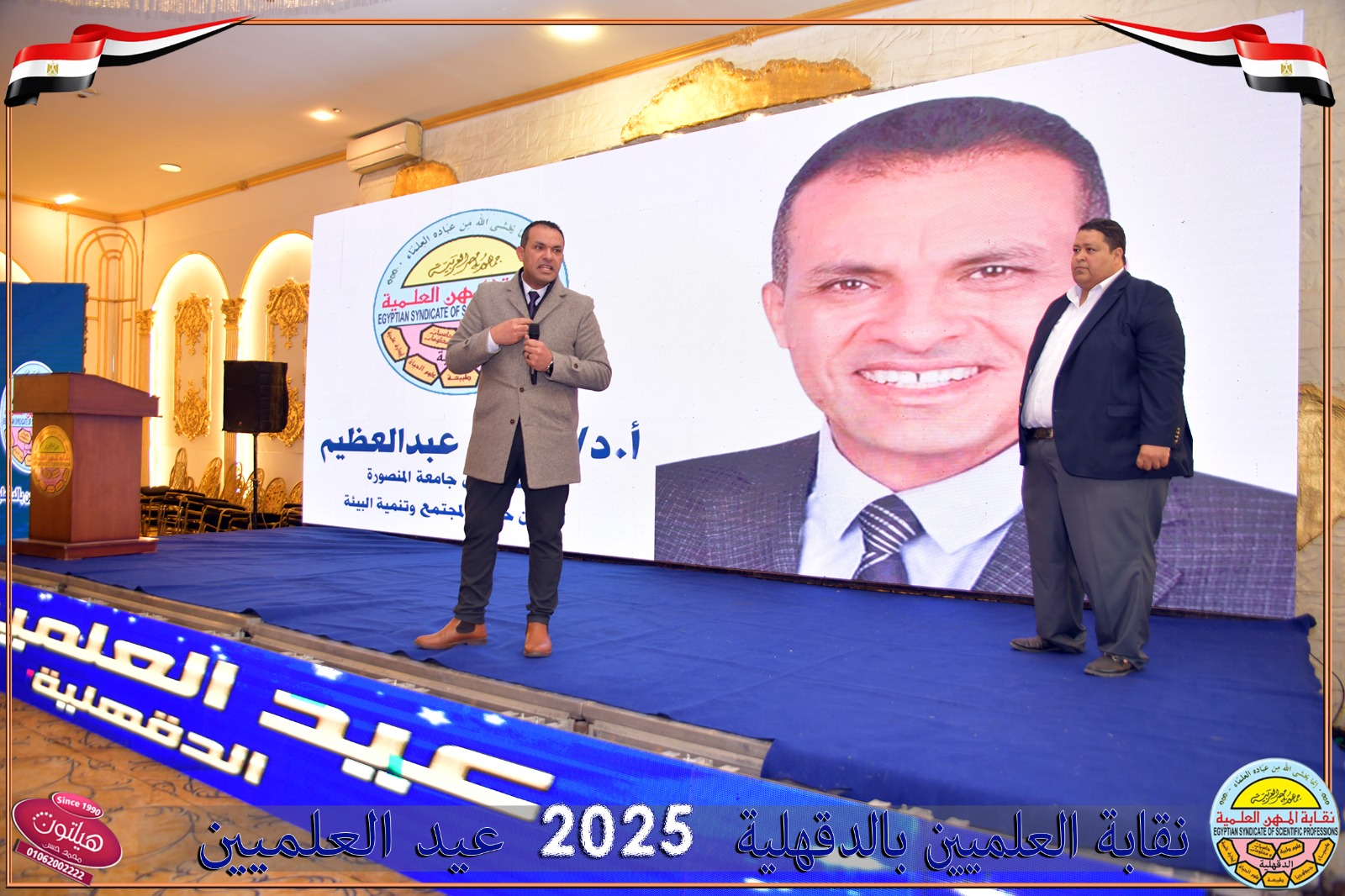 احتفلت نقابة العلميين بالدقهلية بعيد العلميين، في حدثٍ أسطوري حضره عددٌ كبير من الشخصيات البارزة في المجال الأكاديمي والعلمي. جاء الاحتفال برئاسة الدكتور أحمد عبيه، رئيس نقابة العلميين بالدقهلية، وبحضور ممثل النقابة القانوني المستشار عماد شمس الدين، والدكتور صلاح النادي، الأمين العام للنقابة، بالإضافة إلى الدكتور محمد عبدالعظيم، نائب رئيس جامعة المنصورة، وعمداء كليات العلوم والحاسبات والمعلومات وعلوم الحلالة، ولفيف من رؤساء الأقسام وأعضاء مجلس الشيوخ.