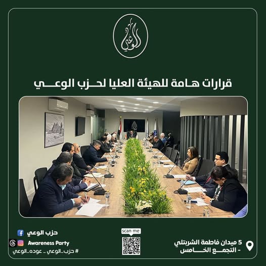 عقد حزب الوعي اجتماع الهيئة العليا برئاسة دكتور باسل عادل رئيس الحزب وبحضور جميع القيادات .