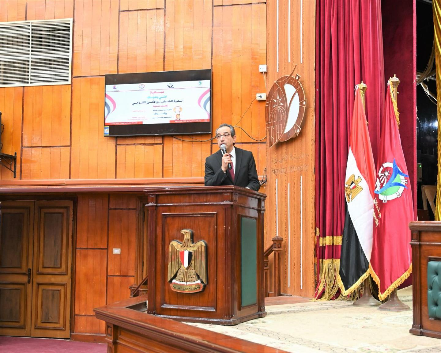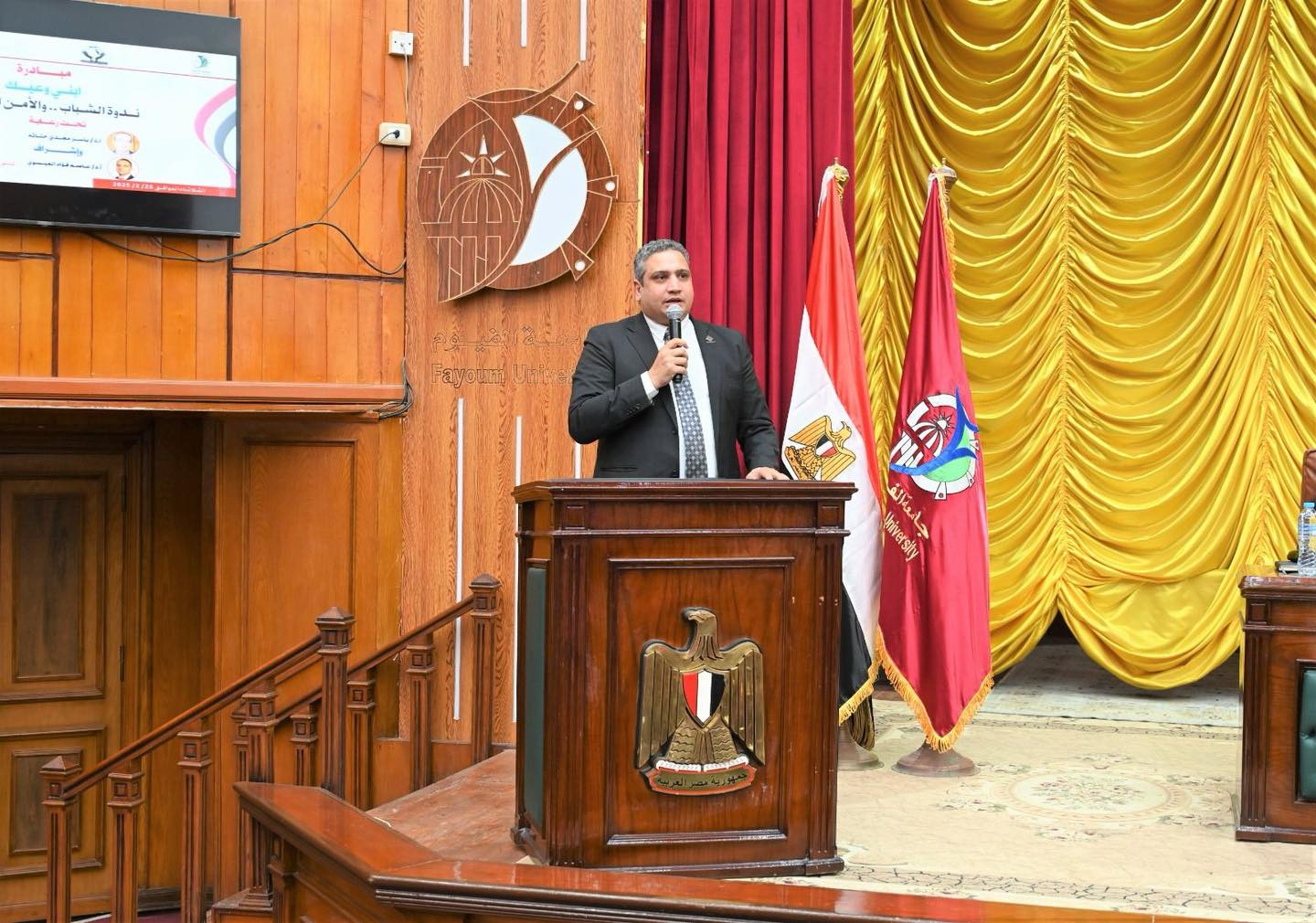 استضافت جامعة الفيوم، ثاني فعاليات مبادرة تنسيقية شباب الأحزاب والسياسيين "ابني وعيك" لبناء وعي الشباب المصري، بحضور د.ياسر مجدي حتاتة، رئيس الجامعة، ود.عاصم العيسوي، نائب رئيس الجامعة لشئون خدمة المجتمع وشئون البيئة وعمداء الكليات وأعضاء هيئة التدريس والمئات من الطلاب.