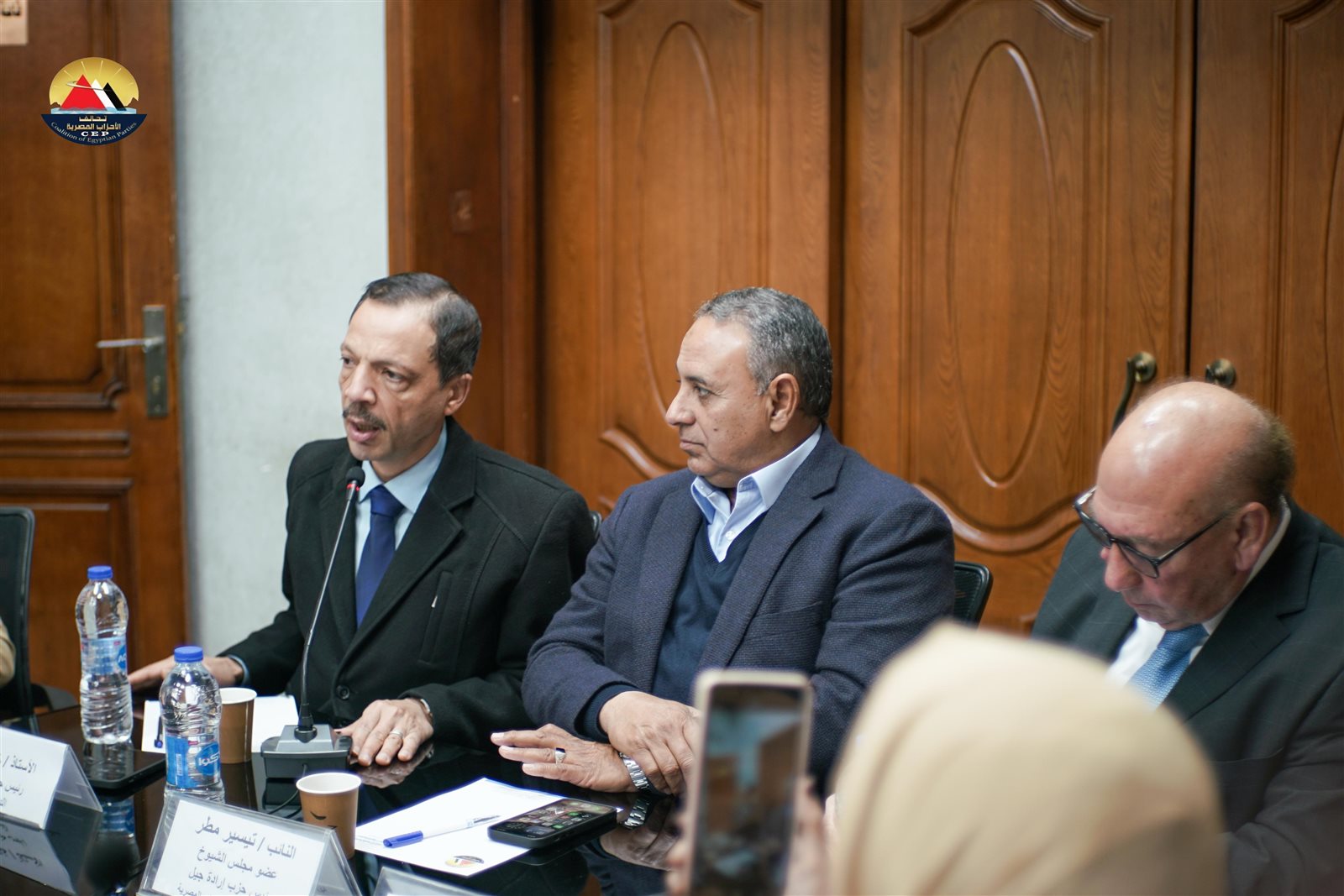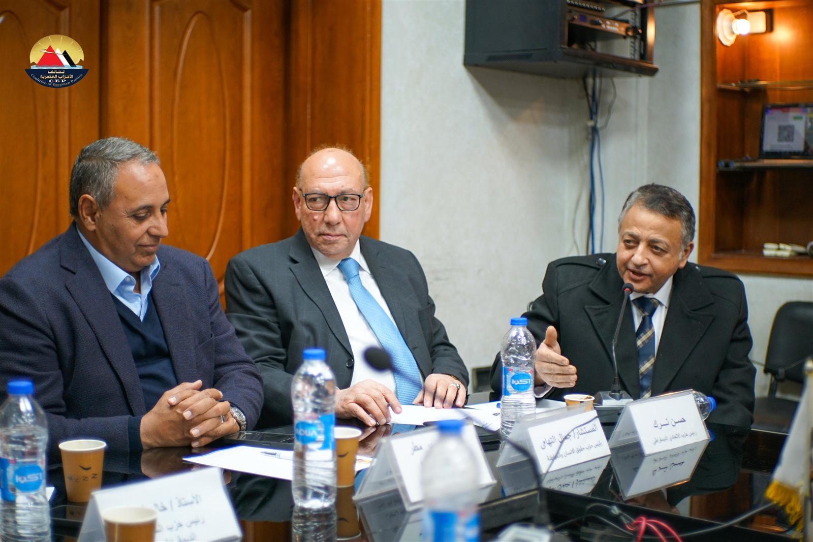 وحرص على حضور الاجتماع الأمين العام لتحالف الأحزاب المصرية، النائب تيسير مطر، رئيس حزب إرادة جيل ووكيل لجنة الصناعة بمجلس الشيوخ، والمستشار جمال التهامي، رئيس حزب حقوق الإنسان والمواطنة، والمحاسب حسن ترك، رئيس حزب الاتحادي الديمقراطي، والمستشار خالد فؤاد، رئيس حزب الشعب الديمقراطي.