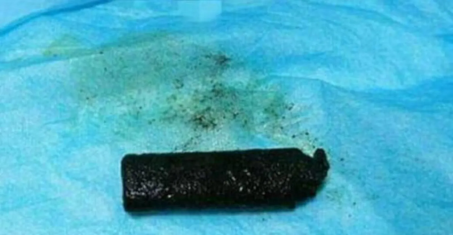 وحسب صحيفة «ديلي ميل» البريطانية أزال الأطباء الجسم البلاستيكي من بطن الرجل الصيني، البالغ من العمر 40 عاما، بعد أن ذهب إلى المستشفى إثر تعرضه لألم شديد في المعدة وملاحظته لوجود دم في برازه.