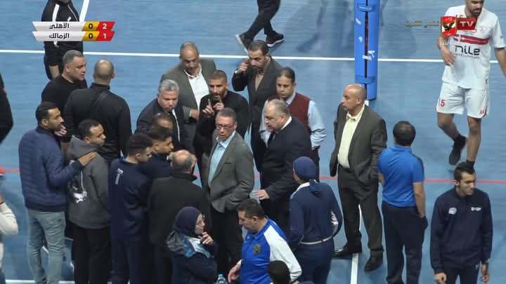 إيقاف مباراة الزمالك والأهلي في نهائي كأس السوبر المصري للكرة الطائرة