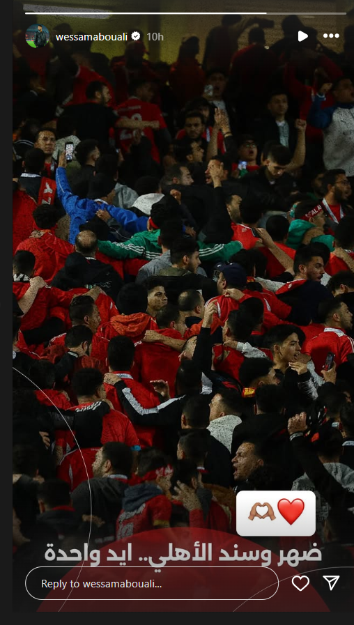 تحيا مصر، ونشر والفلسطيني وسام أبو على عبر حسابه الرسمي" إنستجرام"، صورة للجماهير، معلقاً:" ضهر وسند الأهلي أيد واحدة".