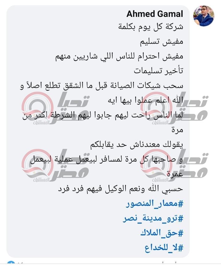 اختتم أحد المتضررين قائلًا: "نصيحتي لأي شخص يفكر في التعامل مع معمار المنصور، لا تشتري منهم هذه شركة لا تلتزم بوعودها، وتخدع عملاءها، ولا تحترم حقوقهم. حسبي الله ونعم الوكيل فيهم."