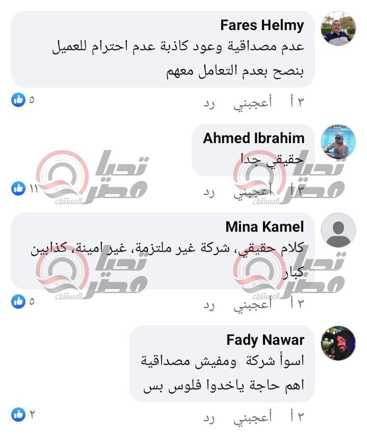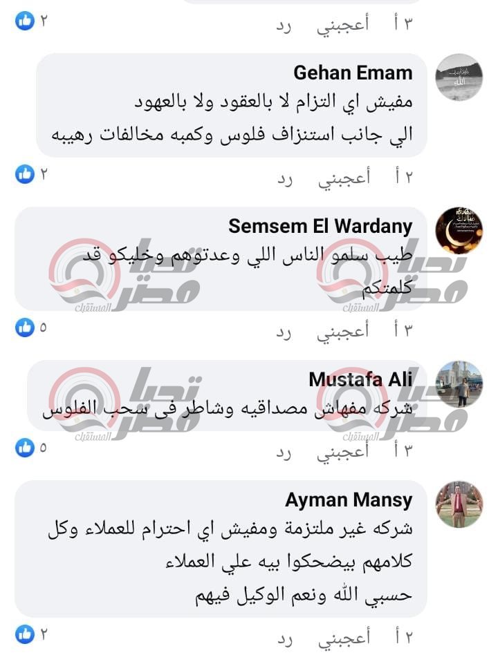وأضاف آخر: "الشركة لا تحترم عملاءها ولا تلتزم بأي مواعيد وهناك تأخير دائم في التسليم، ومعاملة سيئة، وكان صاحب الشركة دائمًا ما يختلق الأعذار بأنه مسافر لعمل عملية أو يؤدي عمرة، بينما نحن هنا ننتظر حقوقنا."