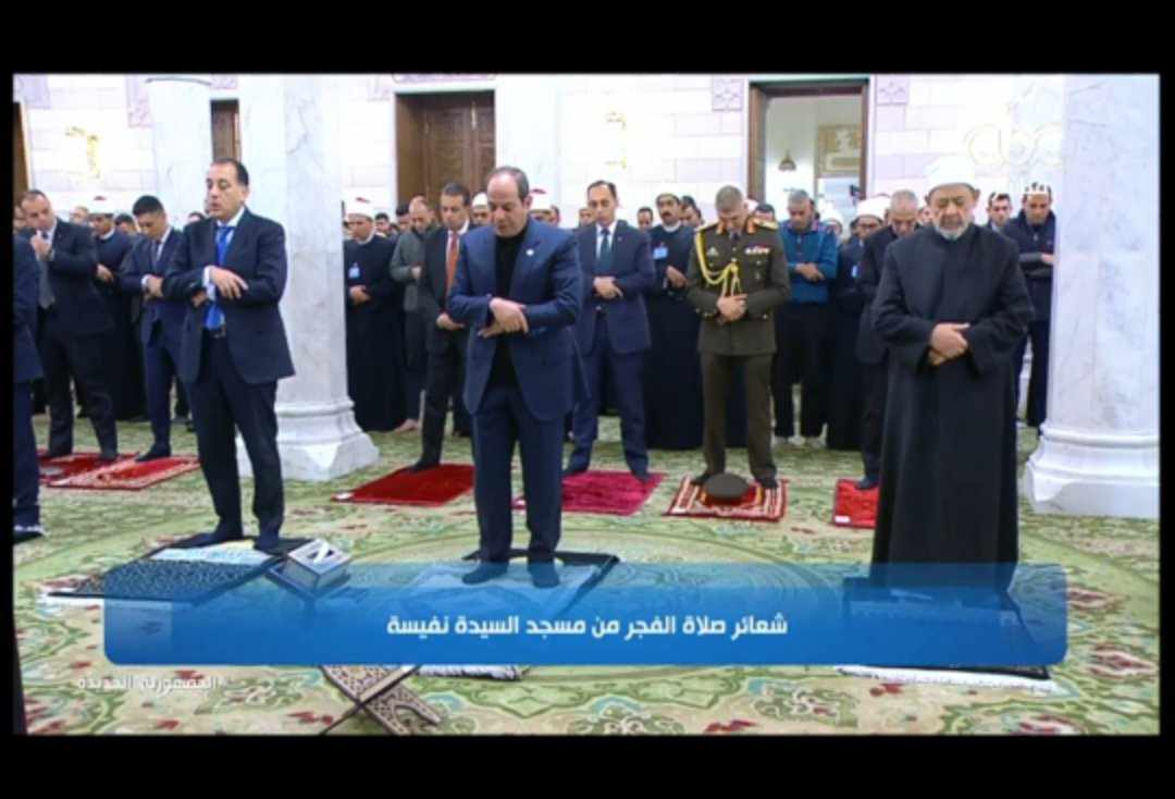 الرئيس السيسي يؤدي صلاة الفجر في مسجد السيدة نفيسة بعد افتتاحه