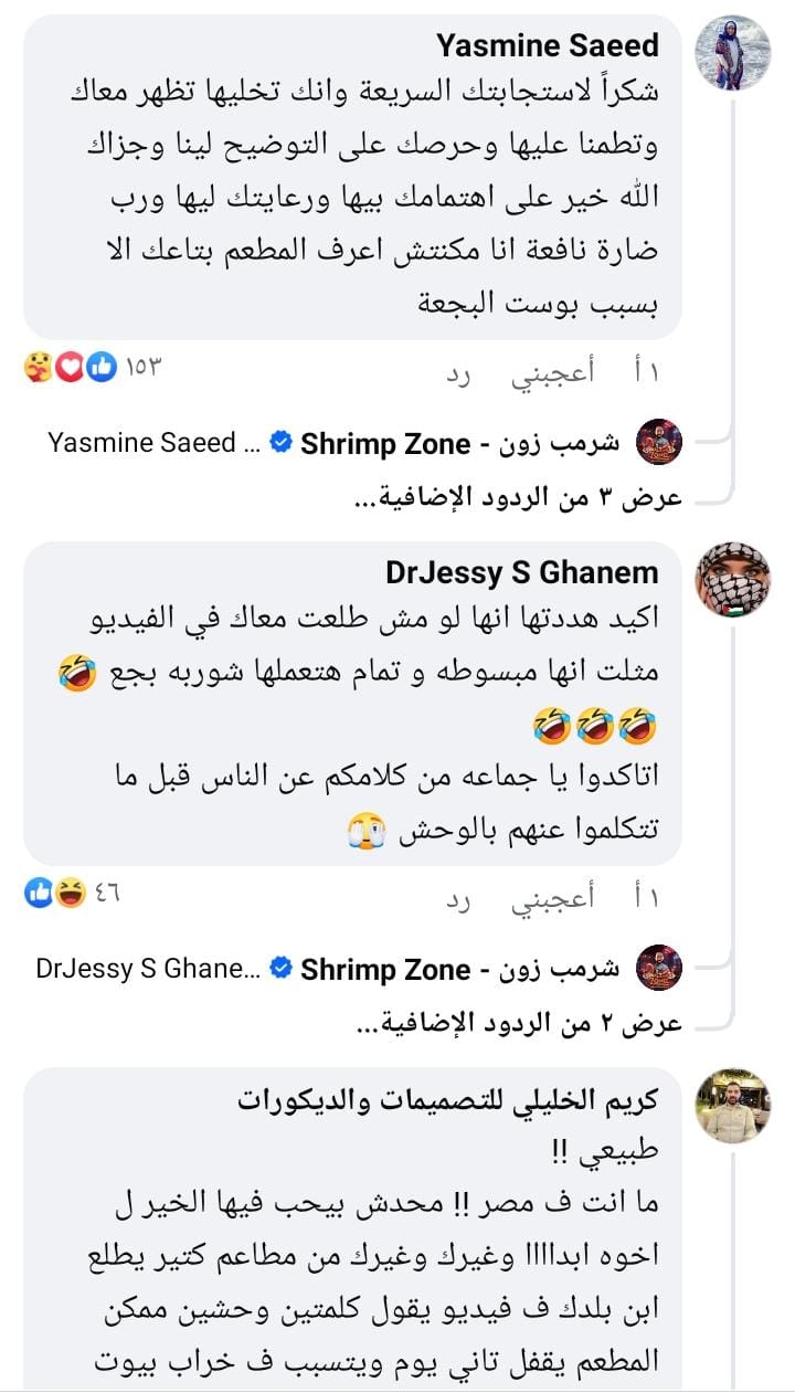 وأضاف آخر قائلاً: “جزاك الله خير على اهتمامك ورعايتك لها ورب ضارة نافعة، فكنت أول مرة أسمع عن مطعمك بسبب بوست البجعة.”