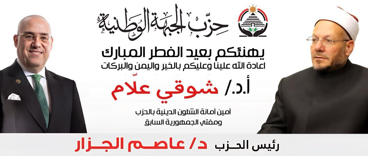 لافتات في كل محافظات مصر.. قيادات حزب الجبهة الوطنية يهنئون المصريين بعيد الفطر المبارك