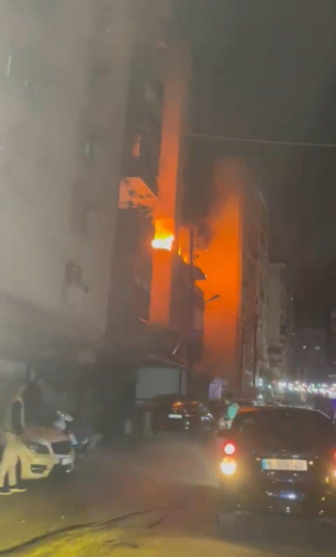 كما انتشرت صور عبر وسائل التواصل الاجتماعي تظهر الشقة المستهدفة والنيران مشتعلة فيها.