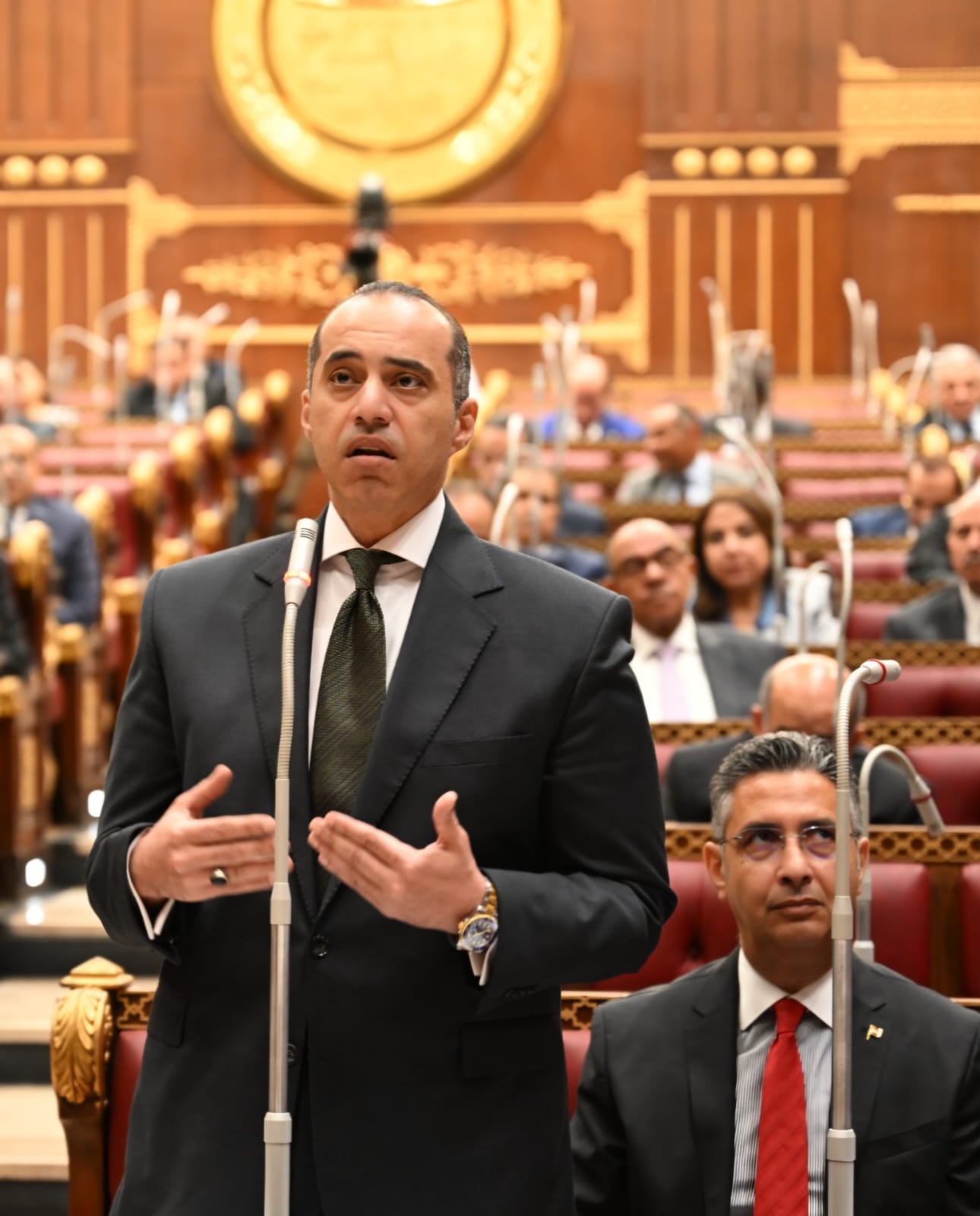 وقال وزير التموين في كلمته أمام المجلس: "أعبر عن عميق فخرى لوجودى في مجلس الشيوخ اليوم، هذا المجلس العريق وما يقوم به من دور كبير خلال الفترة الماضية وما يؤكده ذلك من احترام الدستور والتكامل والتعاون بين السلطات، وأشيد بما نشهده من تطور ملحوظ في الأداء البرلماني خلال الفترة الأخيرة، ما يؤكد أن أن مصر دولة المؤسسات، لضمان حسن التشريع، من خلال ما يقوم بتقديمه من دراسات وإجراءات وأدوات ومراجعات دقيقة للتشريعات تكفل ملائمتها للواقع والمجتمع المصرى". وأشاد الوزير بما طرحه النواب من ملاحظات خلال الجلسة.
