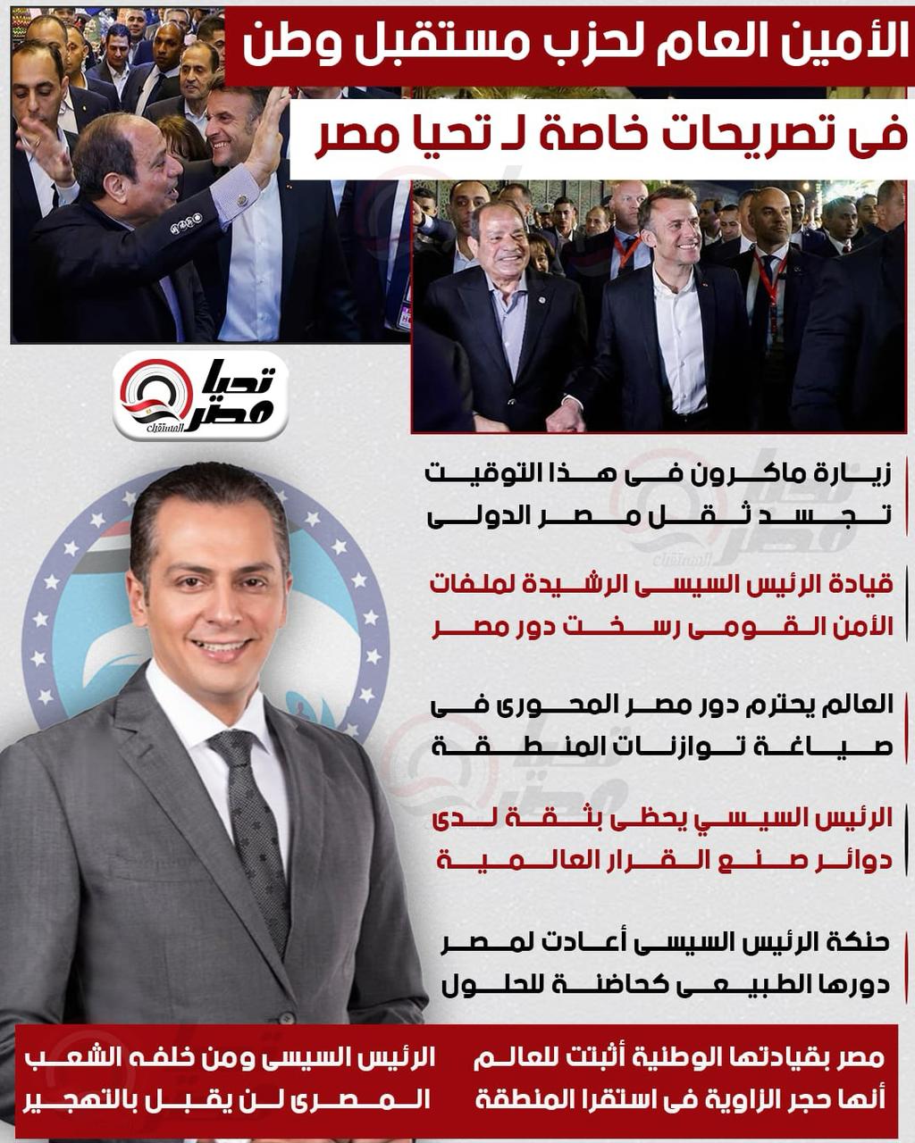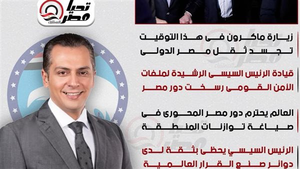 أحمد عبدالجواد لـ تحيا مصر: زيارة ماكرون تجسد ثقل مصر الدولي وقيادة السيسي الرشيدة في ملفات الأمن والسلام