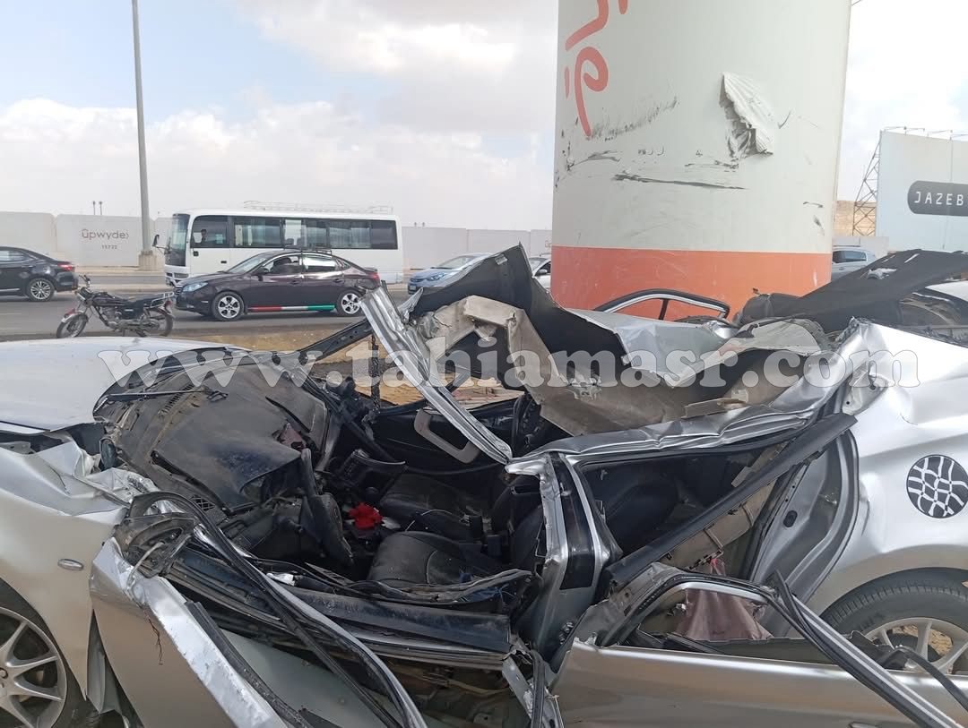 تصادم مروع أعلى محور أكتوبر يُسفر عن إصابة شخصين