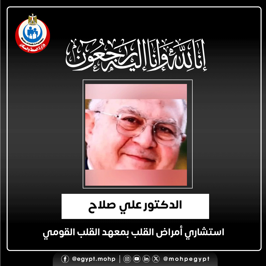 وكان الدكتور علي صلاح، قد توفي مساء أمس الجمعة، أثناء أداء واجبه المهني والإنساني، خلال مشاركته في بعثة رسمية إلى مستشفى العريش العام، حيث توفي إثر تعرضه لسكتة قلبية مفاجئة، عقب انتهائه من إجراء عملية قسطرة عاجلة لمريض مصاب بجلطة في القلب.