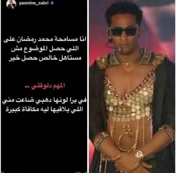 تداول عدد من رواد مواقع التواصل الاجتماعي منشور منسوب للفنانة ياسمين صبري تسخر فيه من الفنان محمد رمضان بسبب إطلالته المثيرة التي ظهر بها في حفلته الأخيرة بالولايات المتحدة الأمريكية.