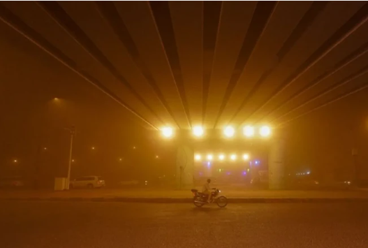شهدت العراق خلال الساعات الماضية عاصفة رملية مخيفة أدت إلى إصابة آلاف الأشخاص بحالات الاختناق، إلى جانب قيام السلطات في كل من البصرة والنجف بتعليق حركة الملاحة الجوية جراء هذه العاصفة الترابية الشديدة التى ضربت البلاد. وسط تحذيرات أممية من أن العراق أحد الدول التى ستتأثر بتغيرات المناخية.