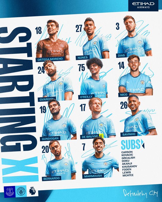تشكيل مانشستر سيتي الرسمي ضد إيفرتون في الدوري الإنجليزي الممتاز