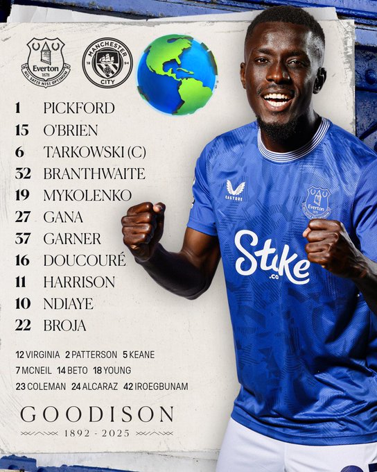 تشكيل إيفرتون الرسمي ضد مانشستر سيتي في الدوري الإنجليزي