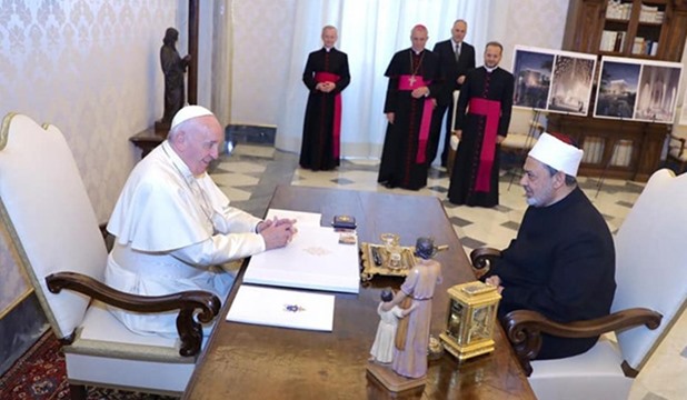 2016 بالفاتيكان في أول لقاءٍ بينهما، قال البابا للصحفيين: *"الرسالة هي اللقاء نفسه". بينما ناقش الرجلان كيف تُحوَّل نصوص الأديان إلى جسورٍ ضد التطرف.