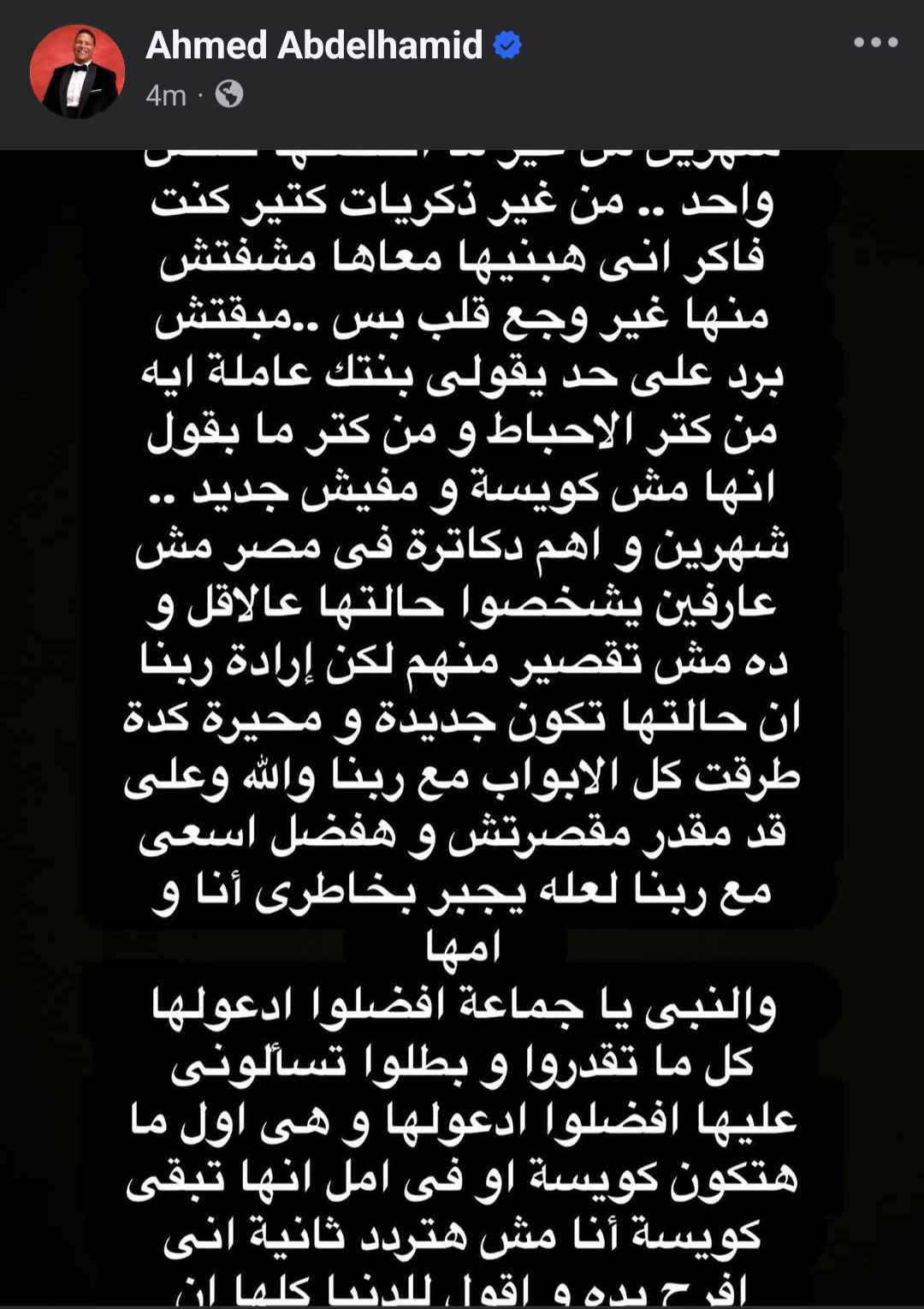 أحمد عبد الحميد يطلب الدعاء لابنته