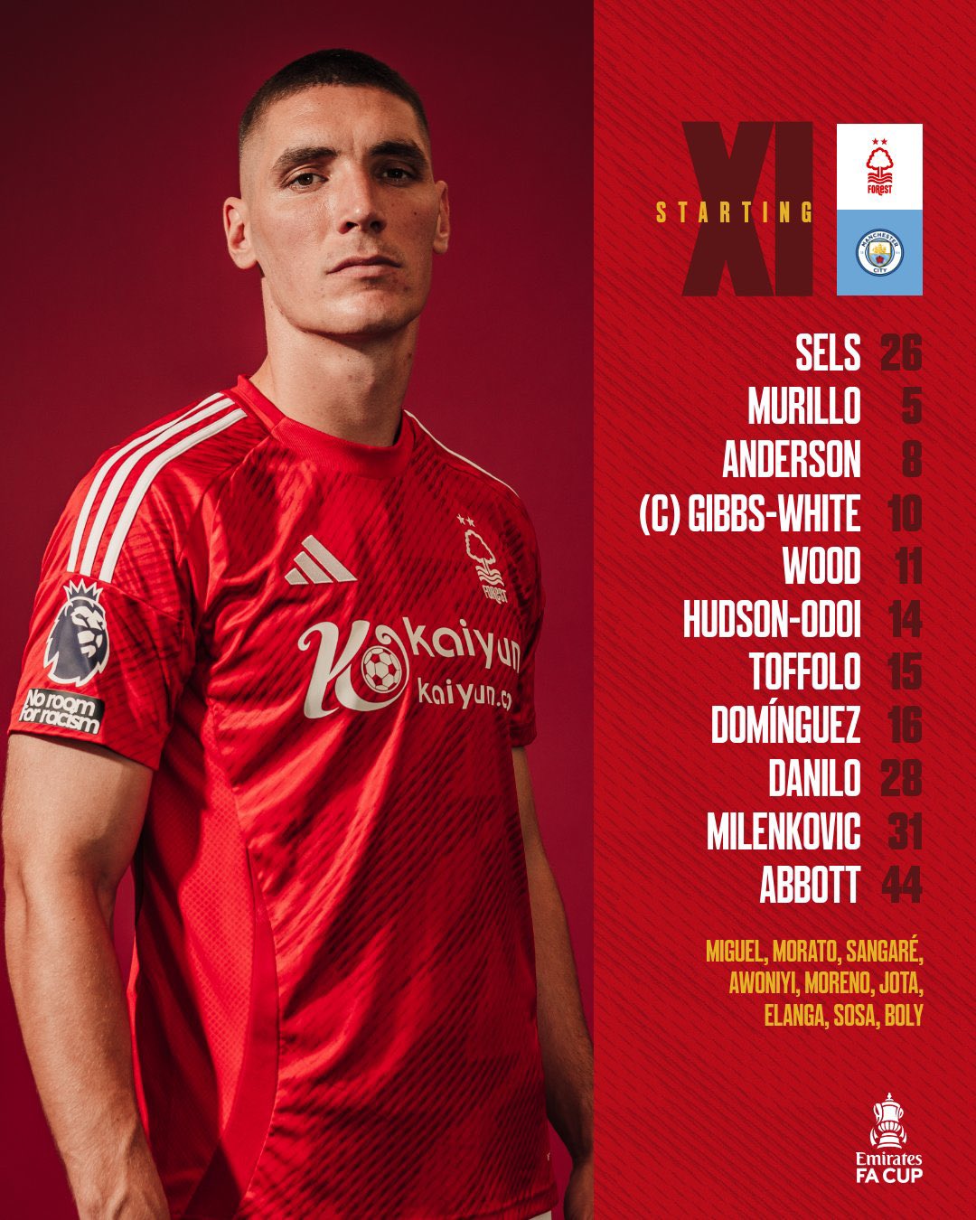 - تشكيل نوتينجهام فورست الرسمي ضد مانشستر سيتي في نصف نهائي كأس الاتحاد الإنجليزي