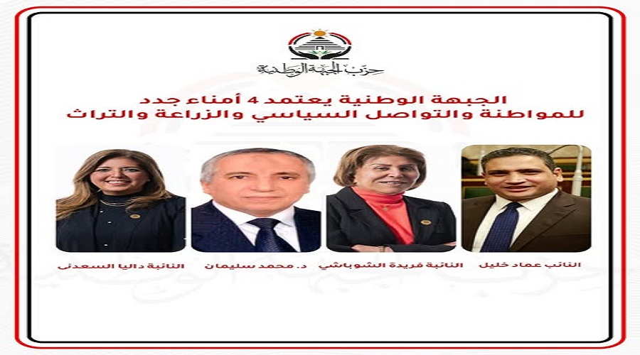الجبهة الوطنية يعتمد 4 أمناء جدد للمواطنة والتواصل السياسي والزراعة والتراث