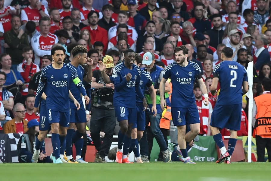 وفي الدقيقة الرابعة سجل عثمان ديمبلي الهدف الأول لباريس سان جيرمان في مفاجأة كبيرة لجماهير الجانرز في البداية.