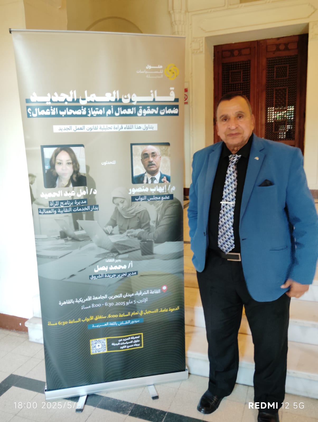 جاء ذلك خلال ندوة نظّمها برنامج "حلول للسياسات البديلة" بالجامعة الأمريكية، يوم 5 مايو 2025، بحضور عدد كبير من المهتمين بالقضايا العمالية، والنقابيين، والعاملين بأجر، إلى جانب عدد من الباحثين.