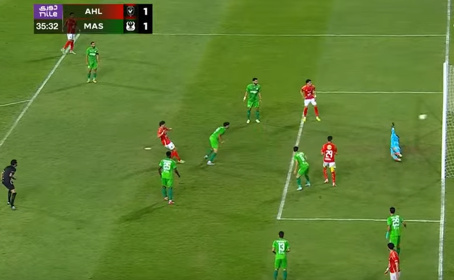 وفي الدقيقة 35 سجل إمام عاشور لاعب النادي الأهلي الهدف الأول والتعادل للمارد الأحمر بعد صناعة رائعة من وسام أبو علي ويعلن عن هدف التعادل.